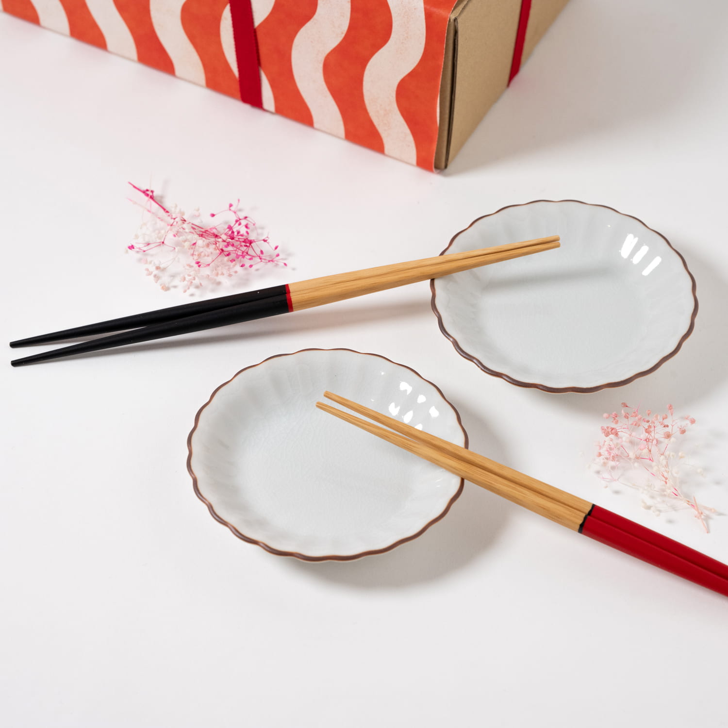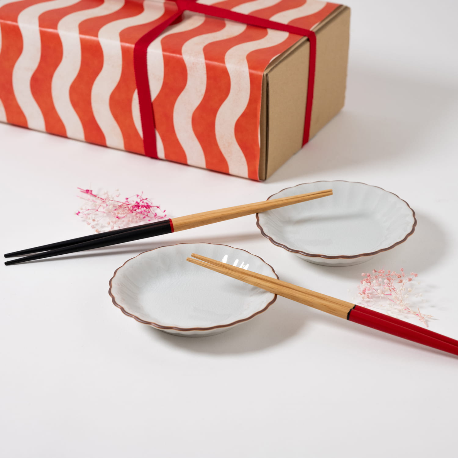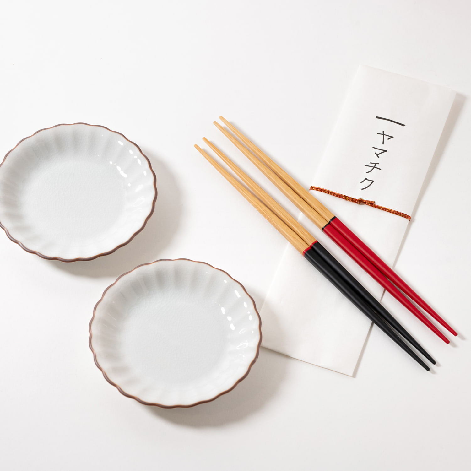 | ギフト | 【HESTA LIFE ギフト】ヤマチク 祝箸(赤・黒)と九谷焼 小皿(une)2枚セット |