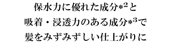 水分蒸散を抑えるセラミド*1を配合。ナノ化することで髪に浸透しやすくなり、毛髪にうるおいを与えてしなやかさを保ちます。