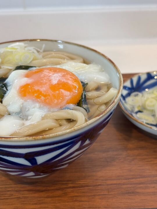 少しだけ冷えた次の日の朝は、温玉のせうどん。