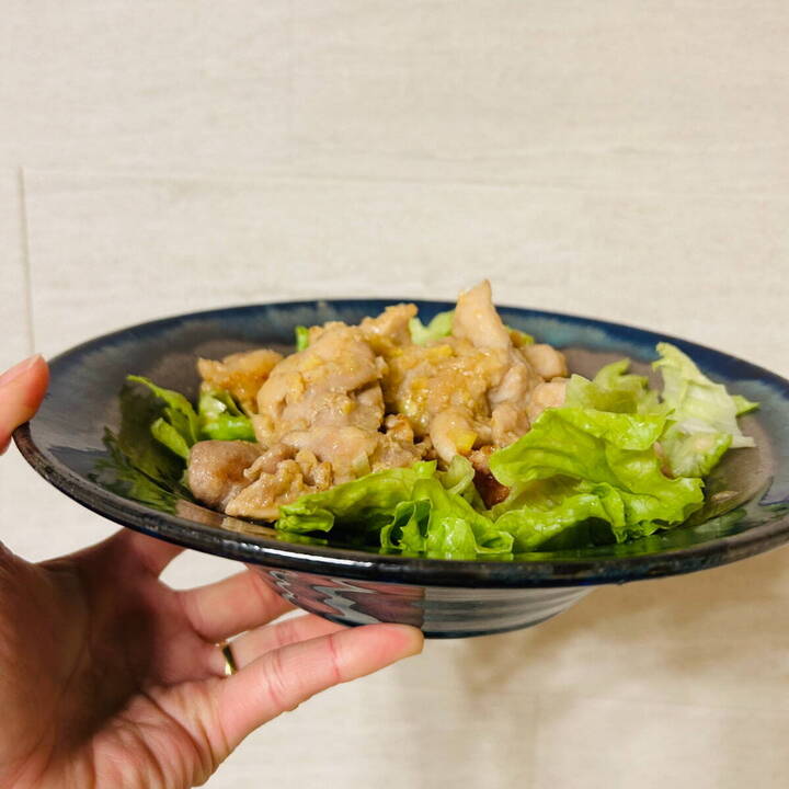 今回はレタスを敷いて「鶏のネギ塩焼」を。